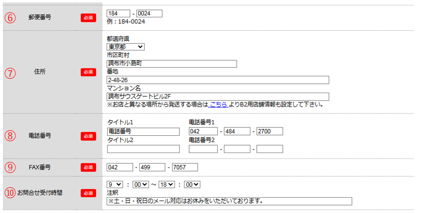 店舗情報の「住所」と異なる場合に設定します。