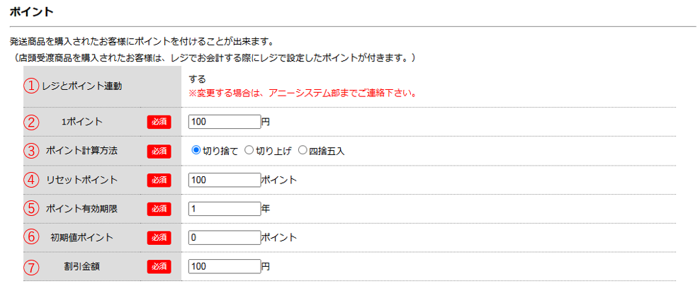 レジで管理している顧客情報のポイントと連動する設定です。(お店では変更できない項目です。)
