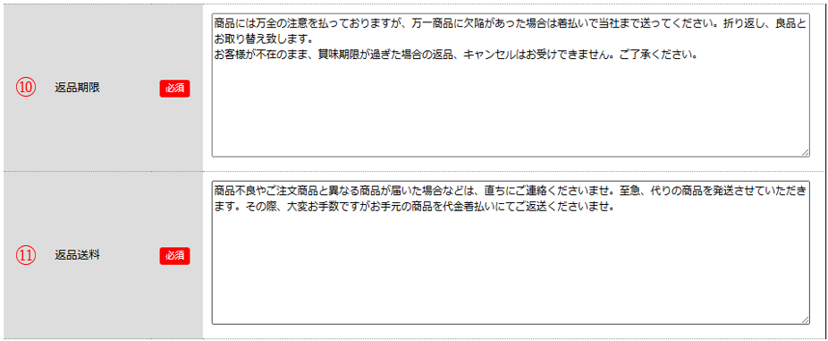 ※「返品期限」・「返品送料」については、「返品・交換について」ページにも表示されます。